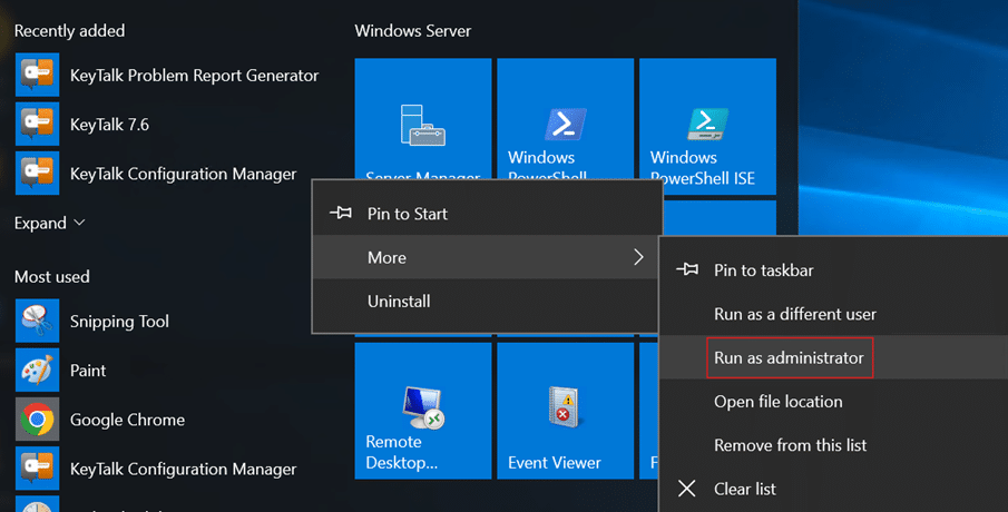 Bước 2: Khách hàng tiến hành mở Keytalk Configuration Manager với quyền Administrator