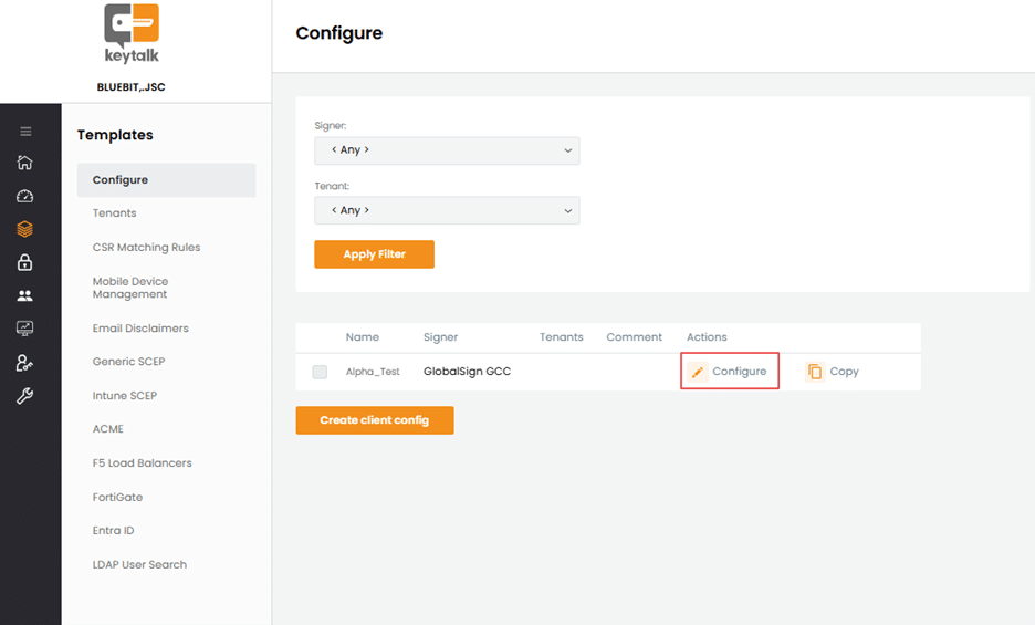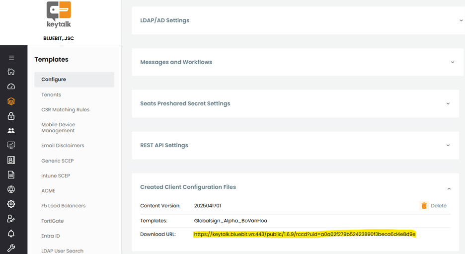 Tìm tới phần Created Client Configuaration File => Copy đường dẫn URL Keytalk