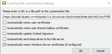 Khách hàng Paste đường dẫn URL để Keytalk được kết nối tới Agent chọn OK để tiếp tục