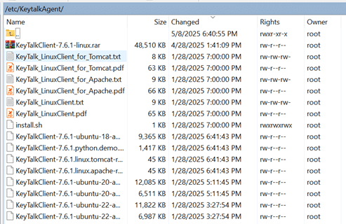 Sau khi Install thành công Agent lên Server sẽ sinh ra thư mục etc/keytalk/tomcat.ini
