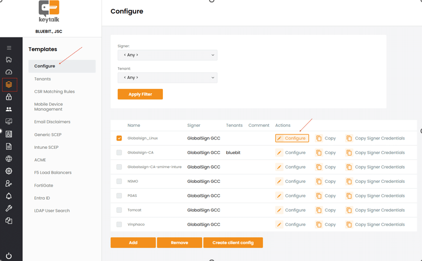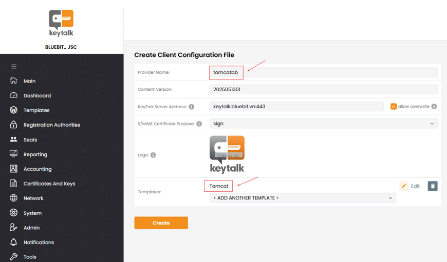 Bước 3: Kết nối Keytalk Agent với Templates của Keytalk Server