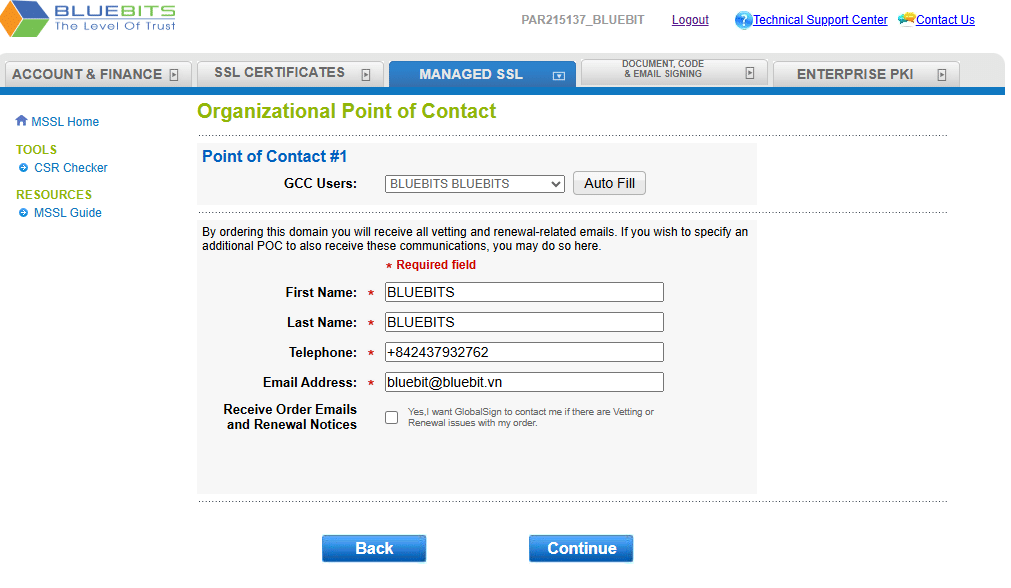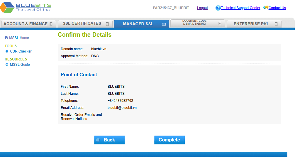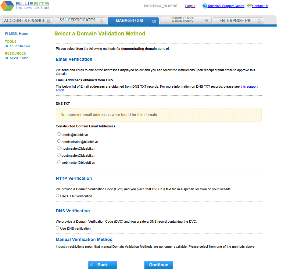 Hướng dẫn xác thực tên miền MANAGED SSL